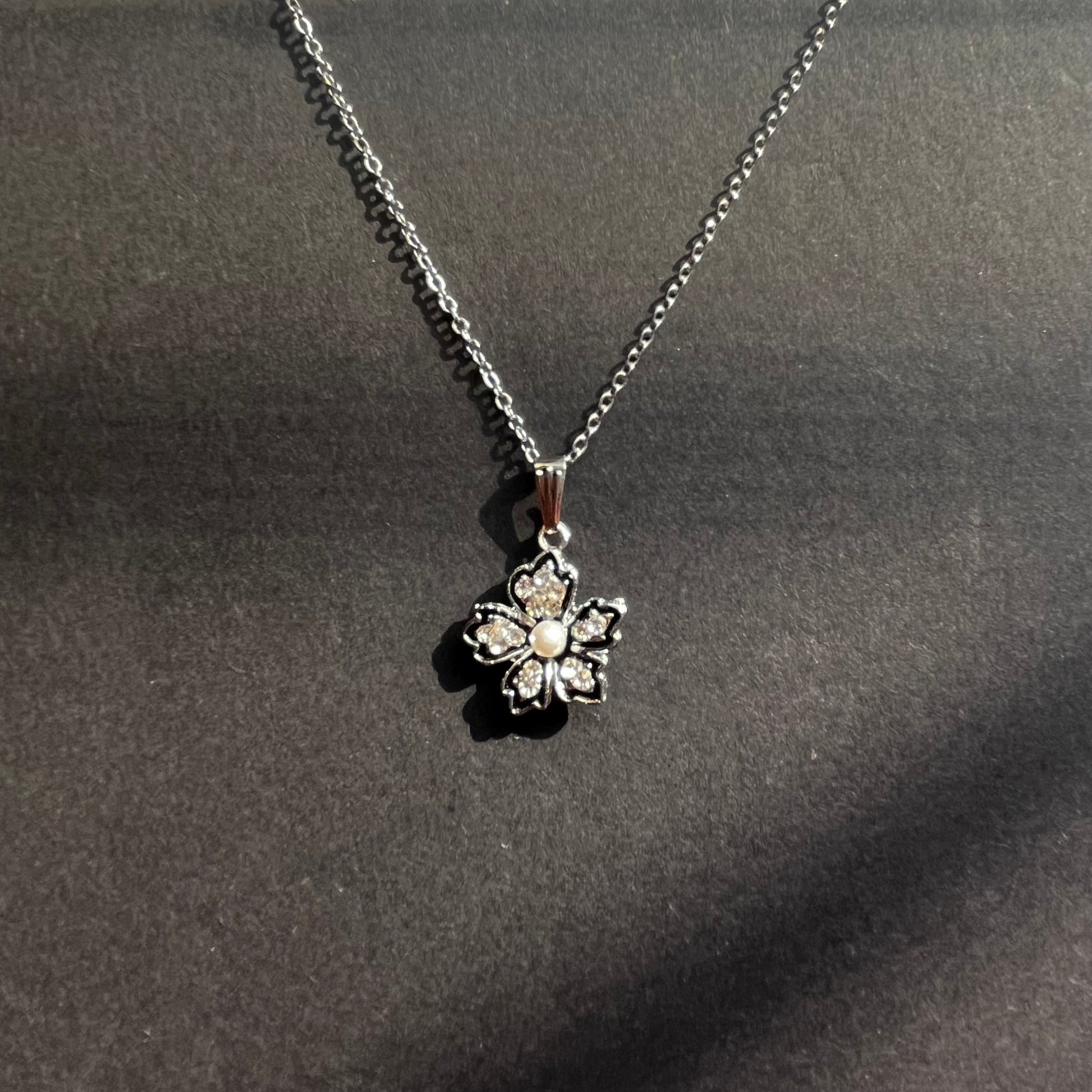 As an industry expert, I present the delicate Flower Necklace. Made with a stunning flower pendant, this necklace adds a touch of femininity to any outfit. Its simple yet elegant design makes it a versatile accessory for any occasion. Crafted with precision, this necklace is a must-have for all fashion enthusiasts.