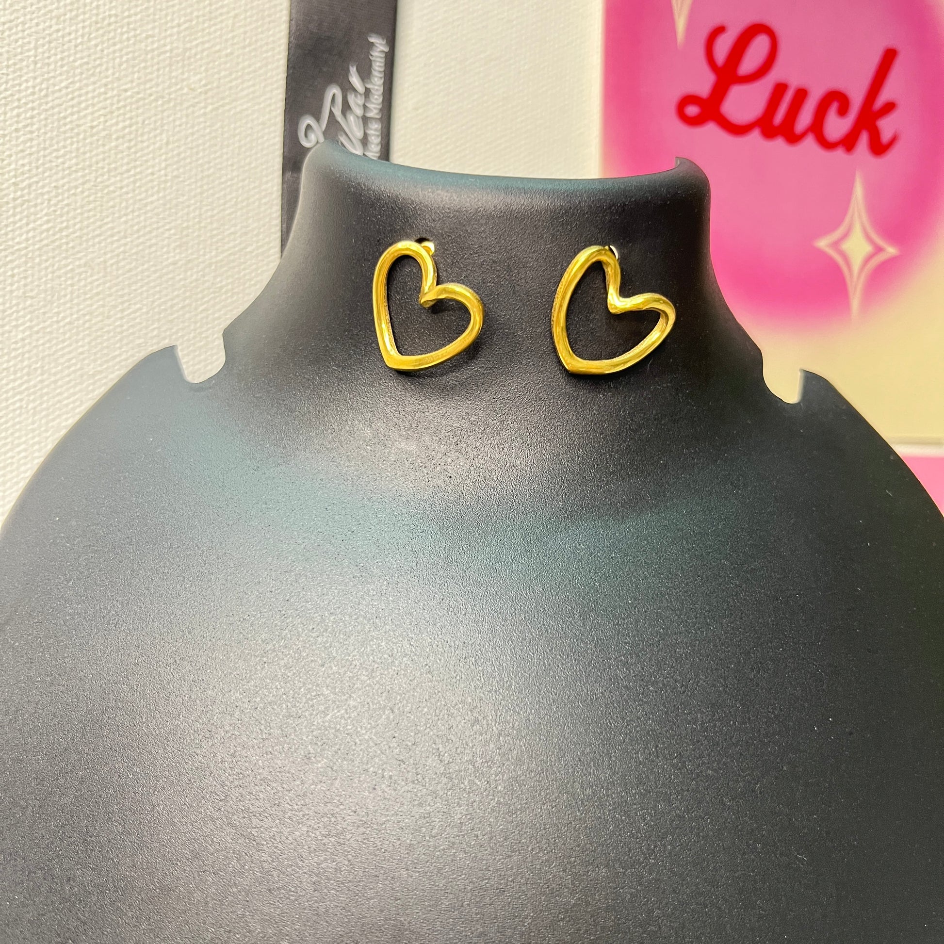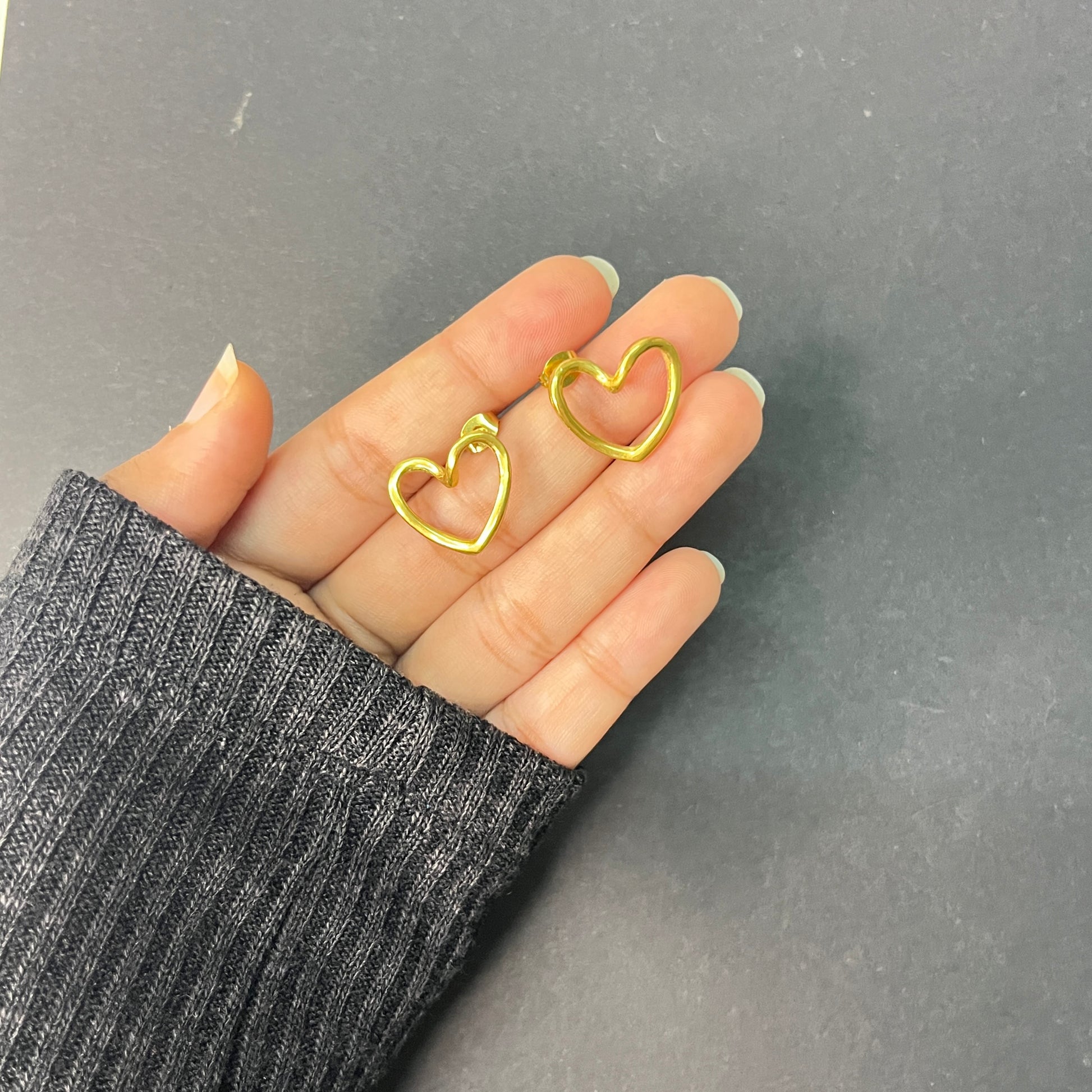Gold Plated Anti Tarnish Stainless Steel Heart Themed Stud Earrings