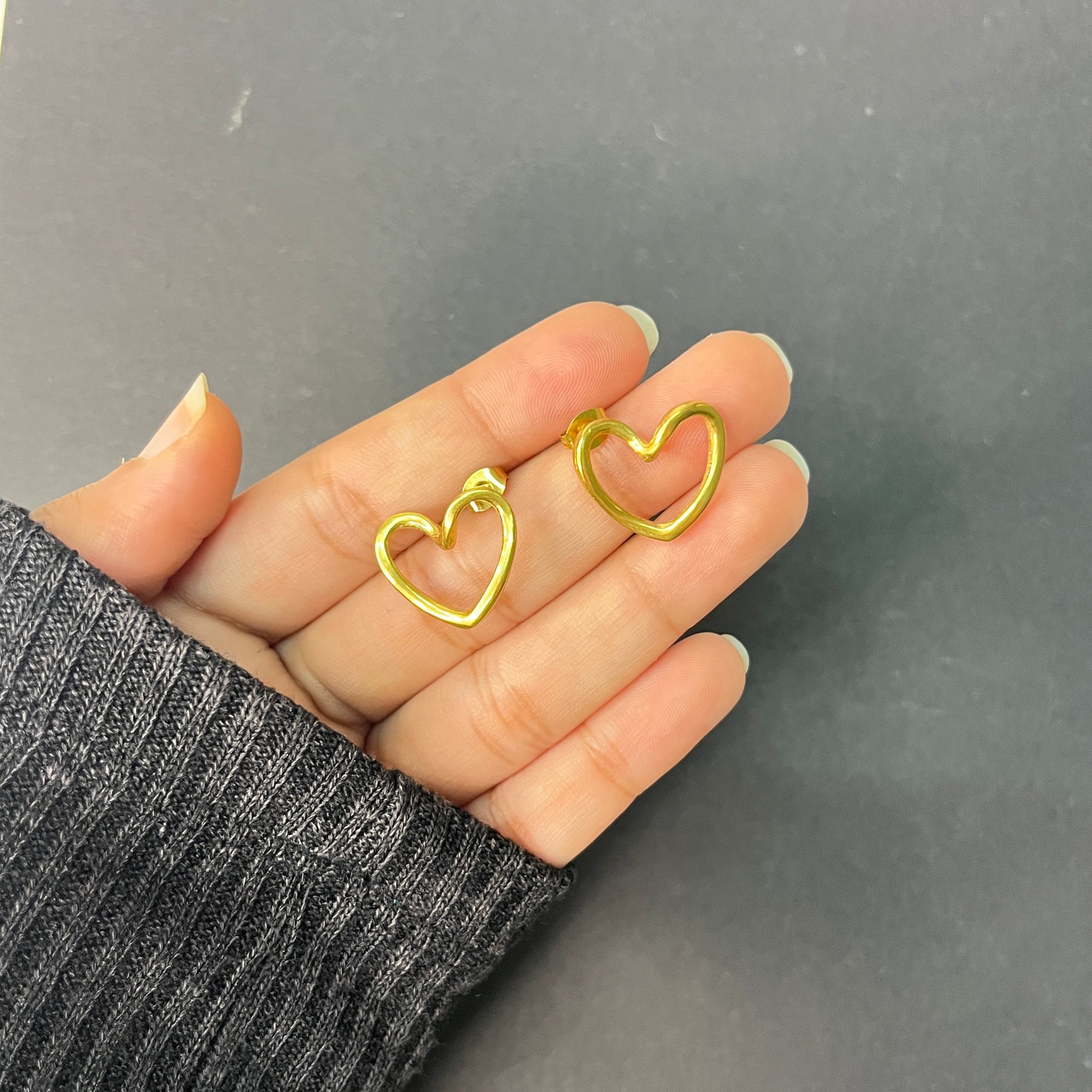 These Gold Plated Anti Tarnish Stainless Steel Heart Themed Stud Earrings combine elegant design with durable craftsmanship. Crafted from stainless steel with a gold plating that resists tarnishing, they offer lasting shine and hypoallergenic comfort. Perfect for daily wear, their heart motif adds a timeless touch to any outfit.
