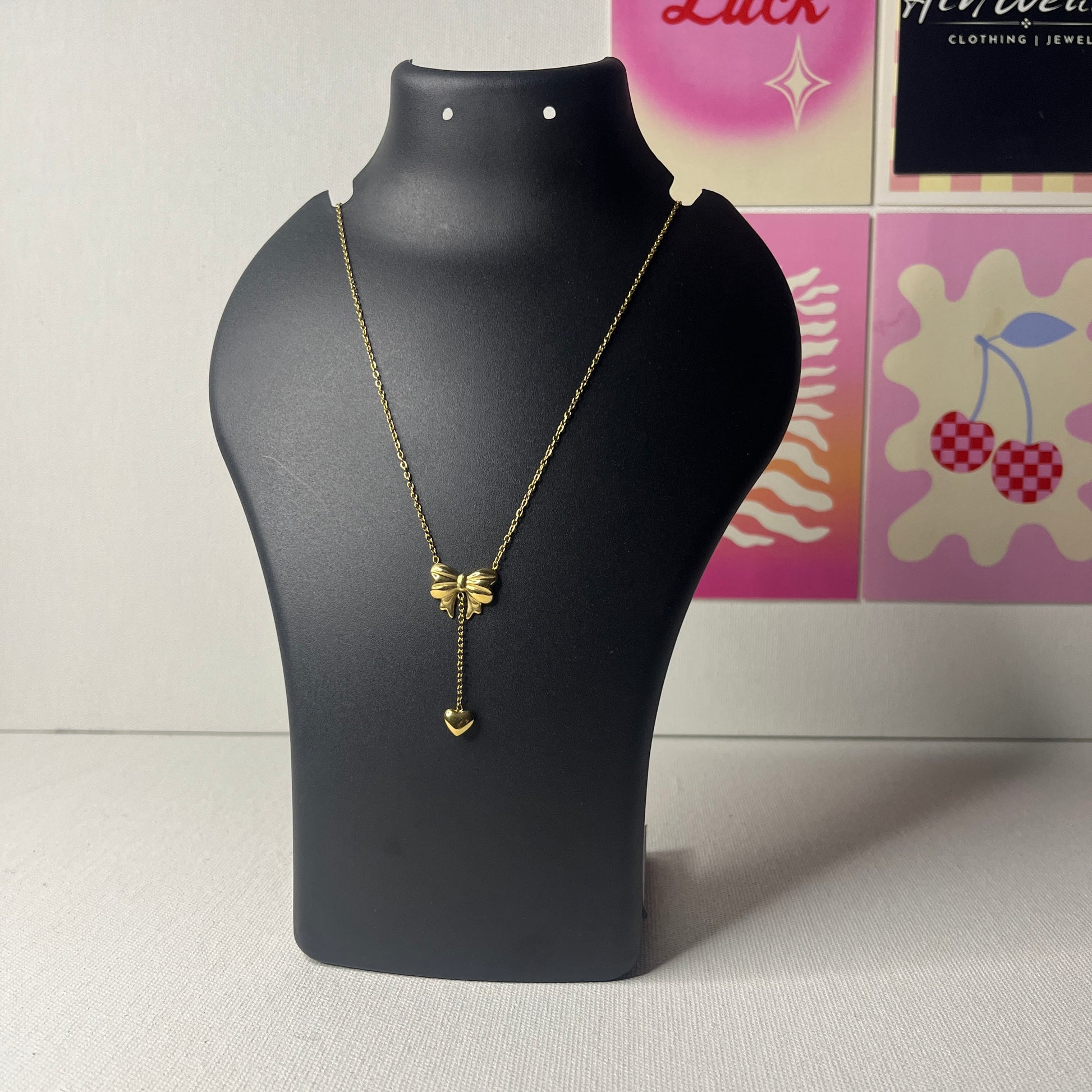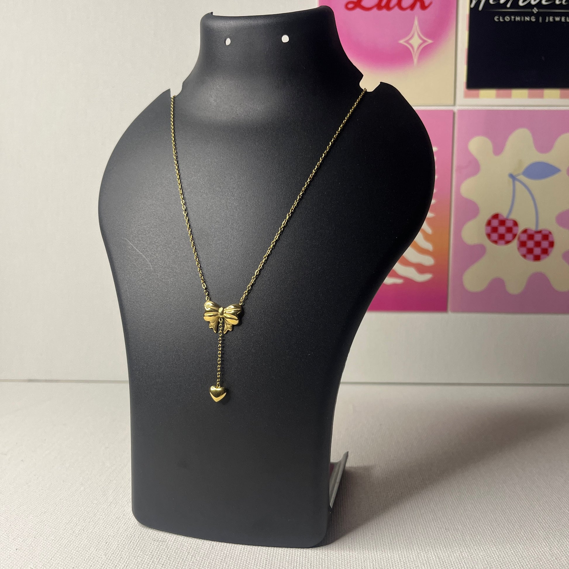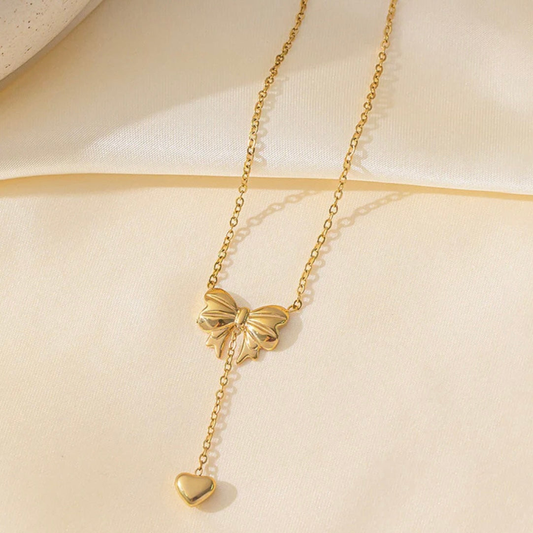 Gold Plated Stainless Steel Anti Tarnish Heart Bow Necklace