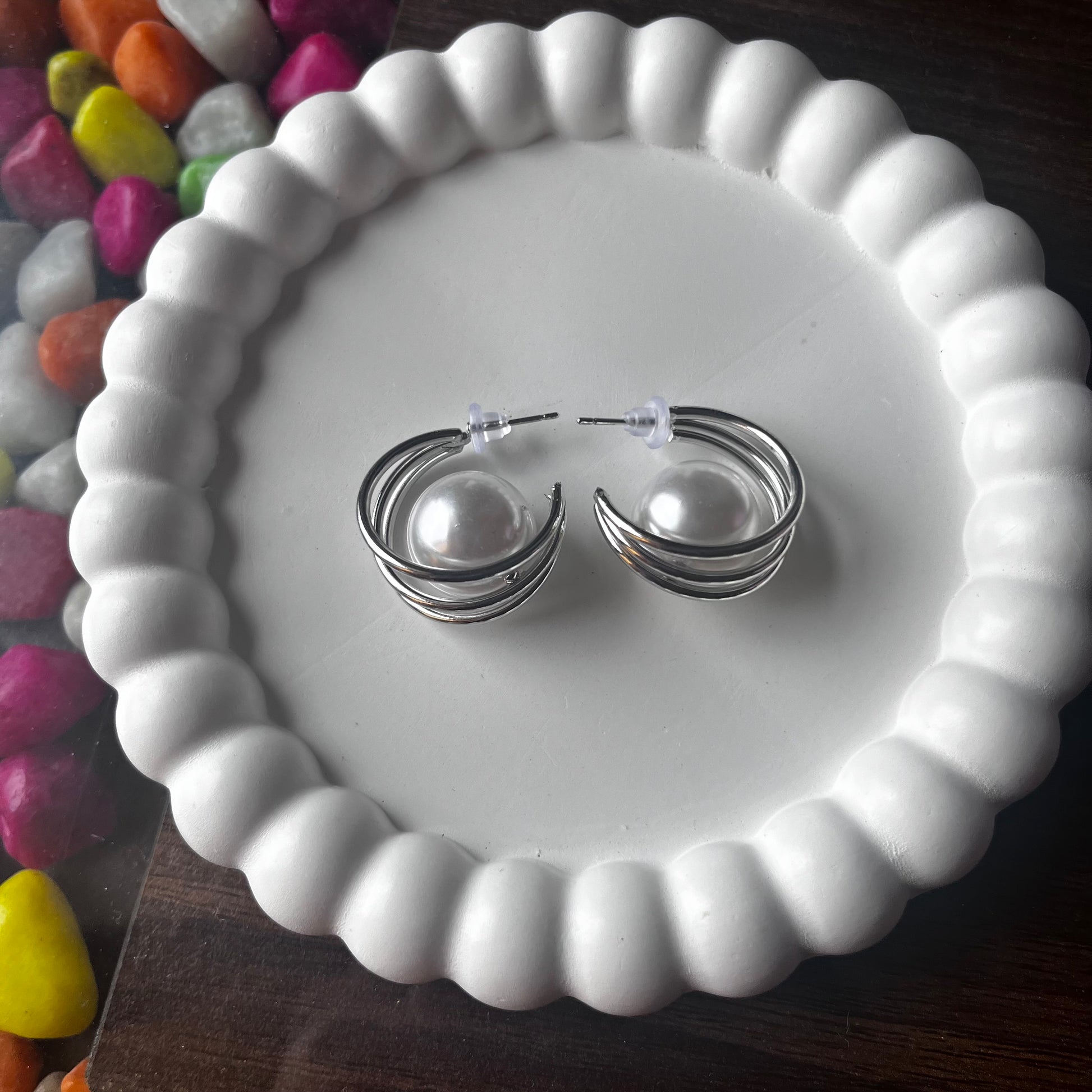 Elevate your look with our exquisite Pearl Hoop Earrings. Made with delicate pearls, these hoops add a touch of sophistication to any outfit. Handcrafted with care, these earrings offer a classic yet modern appeal that is perfect for any occasion. Give your outfit an elegant finishing touch with our Pearl Hoop Earrings.