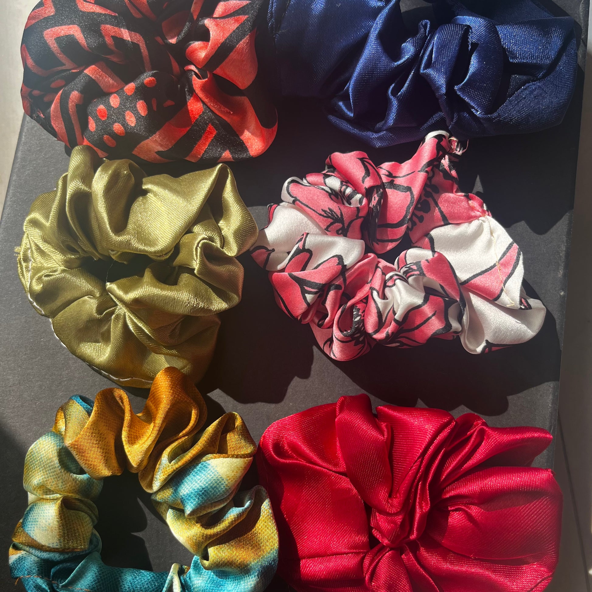 This set of 6 cute scrunchies is a versatile addition to any hairstyle. Made with high-quality materials, these scrunchies provide a comfortable grip that won't damage your hair. With a variety of colors and patterns, you can mix and match for endless styling options. Upgrade your hair accessory game with this must-have combo.