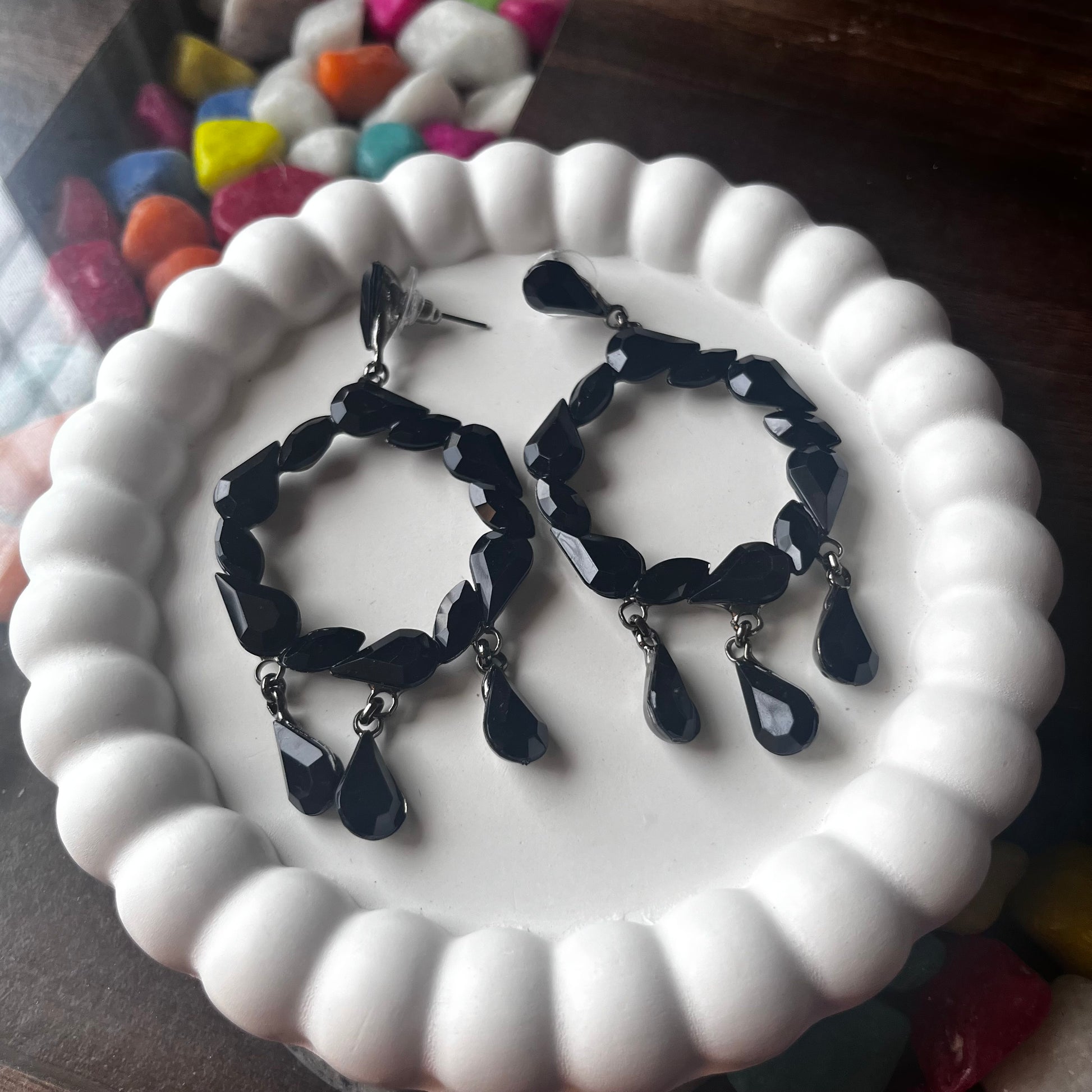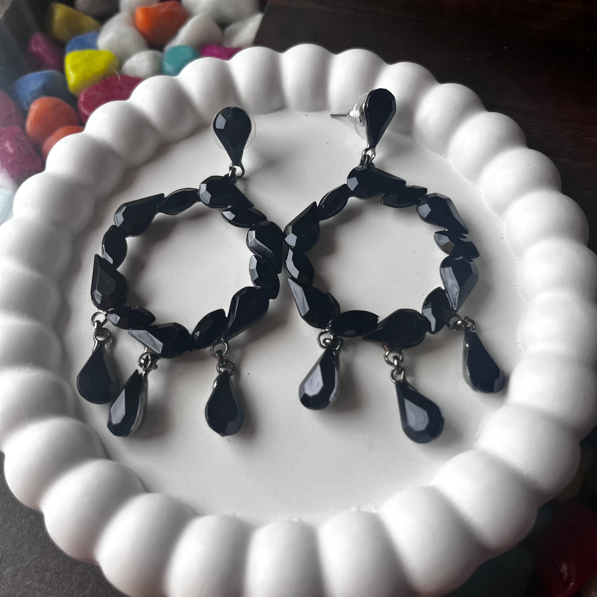 Upgrade your accessory game with our Viral Gemstone Earrings in sleek navy blue and classic black. Crafted with high-quality materials, these earrings are sure to elevate any outfit. Stand out in style and make a statement with these stunning gemstone earrings.